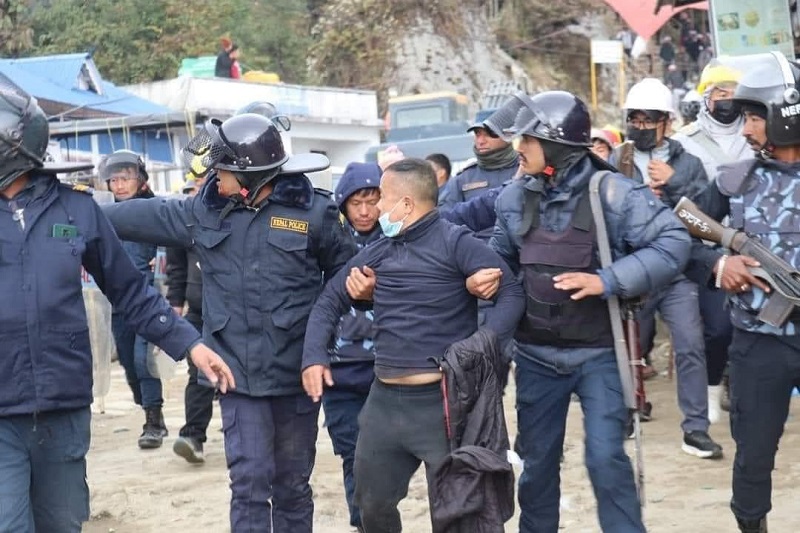 प्रहरीले आन्दोलनकारीबाट तीन वटा खुकुरी, गुलेली र अन्य सामान बरामद गरेको जिल्ला प्रहरी कार्यालयलाई उद्धृत गर्दै राससले जानएको छ । हिमालयन कन्सट्रक्सनले केबलकार बनाउन गएको मङ्गलवारदेखि जमिन सम्याउने काम शुरु गरेसँगै स्थानीयबासिन्दा आन्दोलनमा छन् । शान्तिपूर्ण आन्दोलनको तयारी गर्दा राज्यले मान्छे ताकेर गोली प्रहार गरेको भन्दै नागरिक समाज र राजनीतिक दलका स्थानीय नेताले विरोध गरेका छन् ।