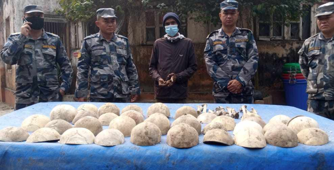 बिहान भारतबाट नेपालतर्फ ल्याउदै गरेको अबस्थामा रानीस्थित २ नम्बर ढाटबाट ३८ वटा मानव कंकाल खप्पर र १० वटा नलीखुट्टा सहित एकजनालाई पक्राउ गरेको हो।