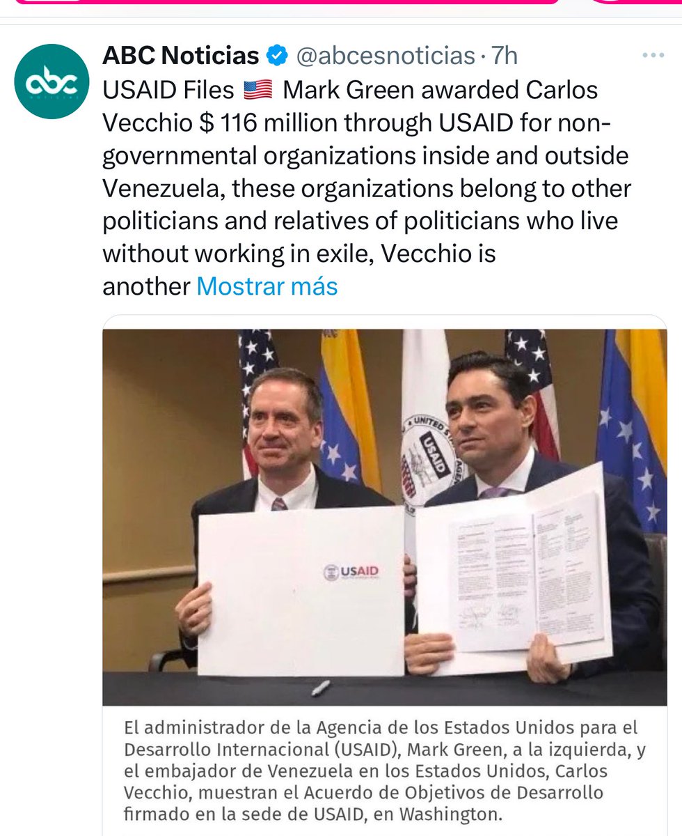 - “२०१३ मा WikiLeaks द्वारा प्रकाशित अमेरिकी कूटनीतिक कागजातले देखाउँछ कि USAID ले भेनेजुएलाको सरकारले चलाएको राजनीतिक आन्दोलनलाई विभाजित गर्न र अन्तर्राष्ट्रिय रूपमा अलग गर्न काम गरिरहेको थियो।”