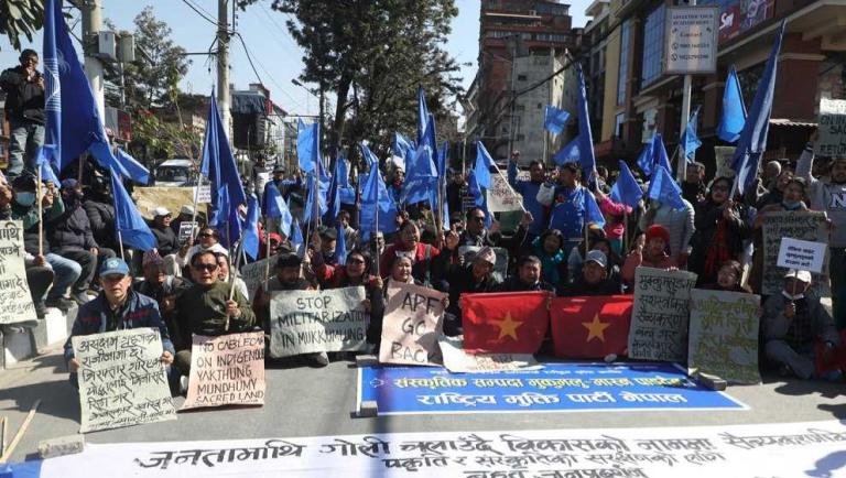 पाथीभरामा केबलकार निर्माण खारेजीको माग गर्दै उनीहरू प्रदर्शनमा उत्रिएका हुन्।