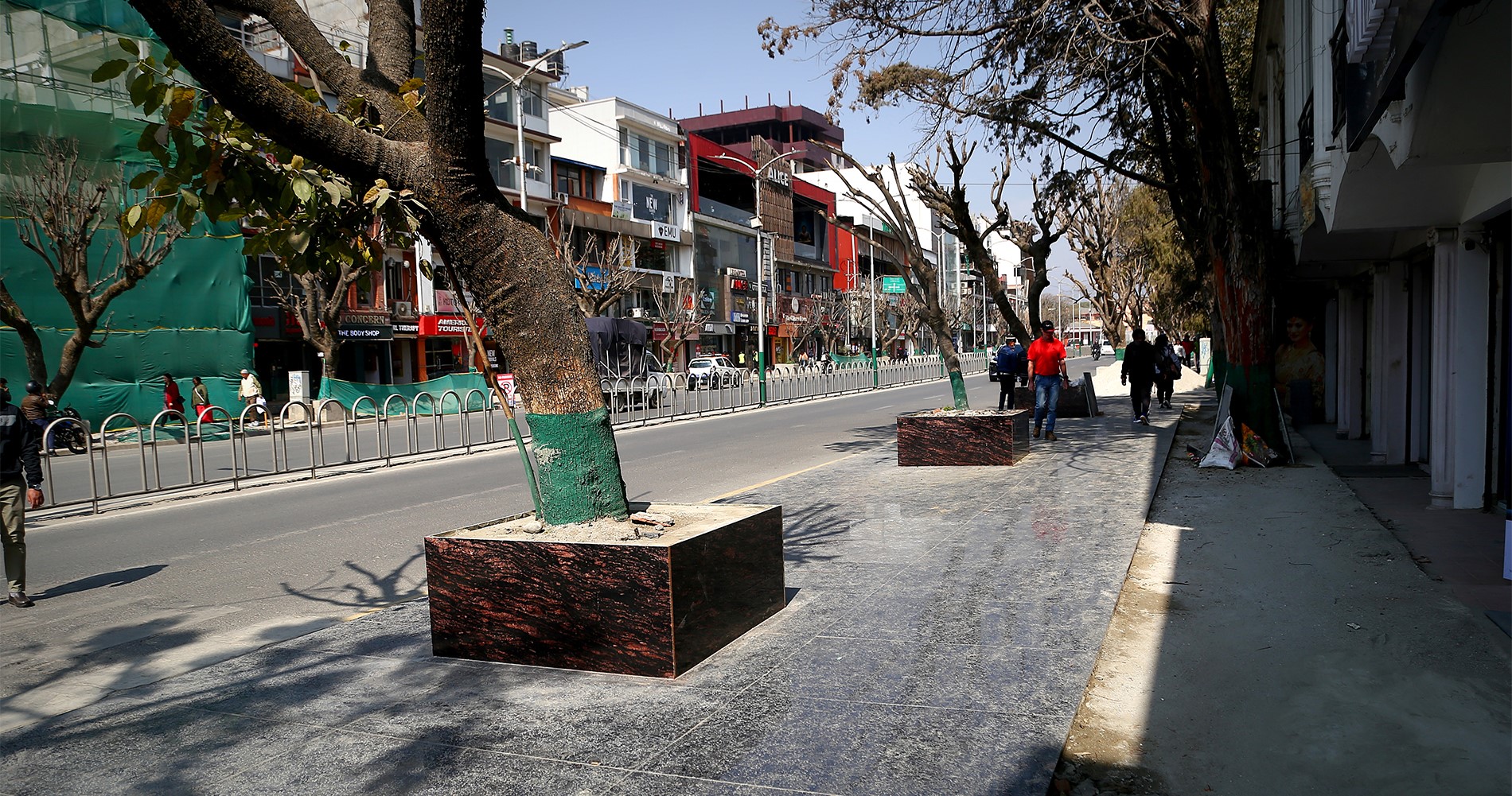 काठमाडौं १ फगुन । नारायणहिटी संग्रहालयअगाडि महानगरीय प्रहरी वृत्त दरबारमार्गदेखि महेन्द्र शालिकसम्म दुवैतर्फको सडकमा ग्रेनाइट लगाइएको हो।