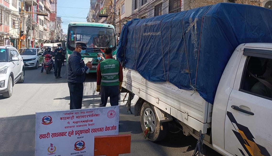 सहरका सडकमा गुडिरहेका सवारी साधनहरुले मापदण्ड पालनाको अवस्थामा जानकारी लिन गएको पुस २९ गतेदेखि महानगरपालिकाको वातावरण व्यवस्थापन विभागले नेपाल सरकारको वातावरण विभाग, ट्राफिक प्रहरी महाशाखा र महानगर प्रहरी बलसँगको सहकार्यमा प्रदूषण जाँच गरिरहेको छ।