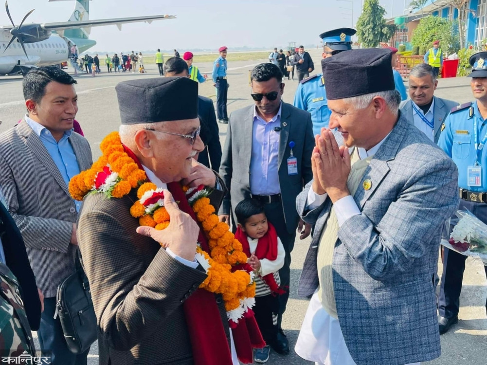 काठमाडौं ५ फागुन । प्रधानमन्त्री केपी शर्मा ओली लुम्बिनी प्रदेशसभाको पाँचौं अधिवेशनको ११औं बैठकलाई सम्बोधन गर्न दाङको देउखुरी आइपुगेका छन् । उनलाई लुम्बिनीका मुख्यमन्त्री चेतनारायण आचार्य, पूर्वमुख्यमन्त्री डिल्लीबहादुर चौधरी, प्रदेशसभाका सभामुख तुलाराम घर्तीमगर र प्रदेश सरकारका मन्त्रीहरुले स्वागत गरे ।
