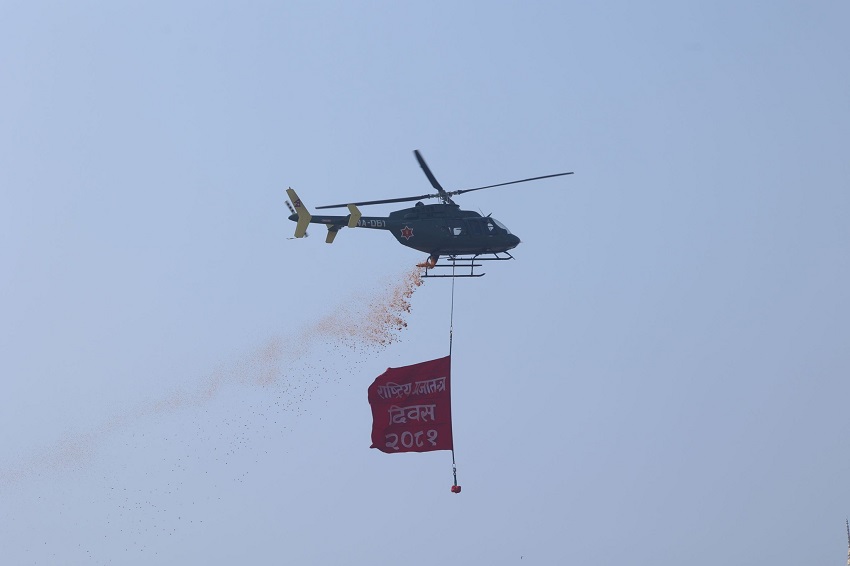 समारोहमा नेपाली सेनाले प्रजातन्त्र दिवस २०८१ ब्यानर अङ्कित हेलिकप्टरबाट पुष्पवृष्टि गराएको थियो भने मैदानमा शान्तिको प्रतिकका रूपमा परेवा उडाइएको थियो । कार्यक्रममा नेपाली सेना, नेपाल प्रहरी, सशस्त्र प्रहरी बलले मार्च पाससमेत गरेका थिए । राष्ट्रप्रेमले भरिएको राष्ट्रिय धुन पनि प्रस्तुत गरिएको थियो ।
