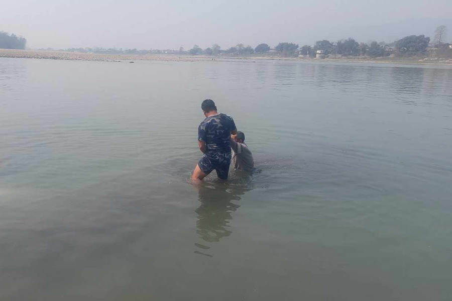 काठमाडौं ९ फागुन । चितवनको भरतपुर महानगरपालिका(३ पुलचोक स्थित नारायणी नदीको पुलबाट हामफालेका एक व्यक्ति सशस्त्र प्रहरीले सकुशल उद्धार गरेको छ ।