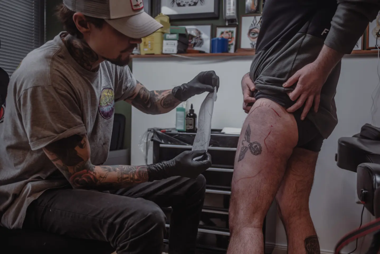 नियो–नाजी ट्याटु हटाउने, एक ट्याटु कलाकारले ग्राहकको नियो–नाजी मसीलाई निःशुल्क ढाक्छ, डिसेम्बर १९, २०२४।
