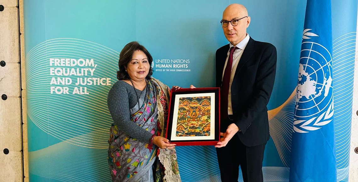 काठमाडौं १४ फागुन । परराष्ट्रमन्त्री डा आरजु राणा देउवाले संयुक्त राष्ट्रसङ्घीय मानवअधिकार उच्च आयुक्त भल्कर टकसँग जेनेभामा भेटवार्ता गरेकी छन्। संयुक्त राष्ट्रसङ्घीय मानवअधिकार परिषद्को ५८औँ उच्चस्तरीयसत्रमा सहभागिताका लागि जेनेभामा रहेकी मन्त्री डा देउवाले बुधबार साइडलाइन भेटवार्ता गरेकी हुन्।