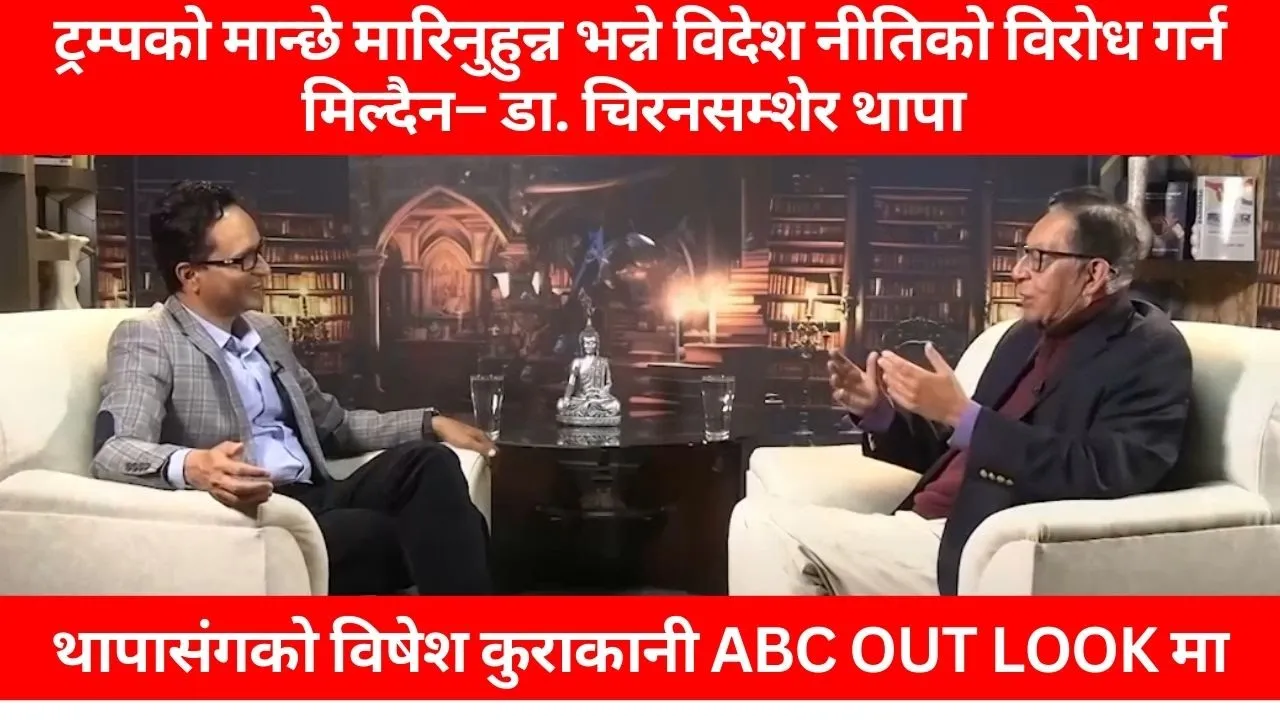 काठमाडौं । डा.चिरनशमशेर थापाले अमेरिकी राष्ट्रपति डोनाल्ड ट्रम्पले चालेको कदमको कसैले विरोध गर्न नमिल्ने बताएका छन् । उनले एबीसी टेलिभिजनको कार्यक्रम आउटलुकका लागि प्रधानसम्पादक शुभशंकर कँडेलसँग कुरा गर्दै उनले विश्वमा कतै पनि युद्धबाट मान्छे मारिनु हुन्न भन्ने कुराको विरोध गरिनु हुन्ने भन्ने बताएका हुन । उनले देश देशवीचको युद्धले कुनैपनि नागरिकको ज्यान लिने कुरा ठिक नभएको बताउदै पछिल्लो समय ट्रम्पले रुस युक्रेन युद्ध रोक्न खोजेको बताएका छन् ।