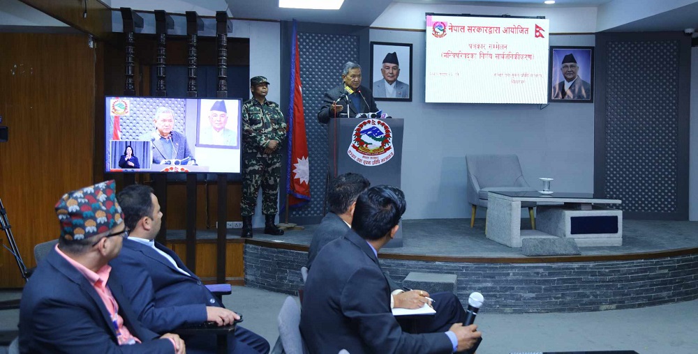 सञ्चार मन्त्रालयमा शुक्रबार आयोजित पत्रकार सम्मेलनमा उठेका प्रश्नको जवाफ दिने क्रममा उहाँले संविधान संशोधन सरकारको महत्त्वपूर्ण काम भएको उल्लेख गर्नुभयो । “सरकार अहिले सुशासन प्रणालीलाई गतिशील बनाउन कटिबद्ध छ, संविधान संशोधनको काम तीन वर्षभित्र पूरा हुन्छ”, उहाँले भन्नुभयो ।