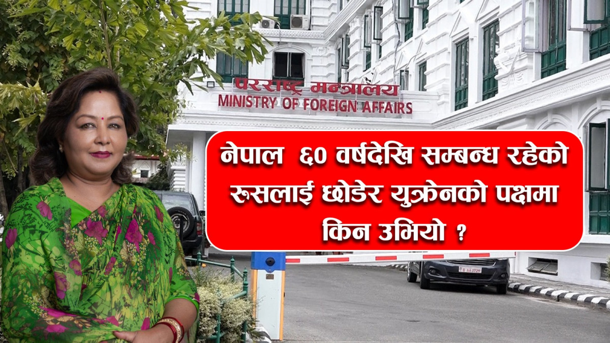 नेपाल र रुस बीचको दांैत्य सम्बन्ध करिव ६ दशक पुरानो हो । तर नेपालले संयुक्त राष्ट्र संघको महासभामा छिमेकी मुलुक भारत र चीन अनुपस्थित रहँदा रुसलाई छोडेर युक्रेनको पक्षमा उभियो । ‘युक्रेनमा न्यायपूर्ण र दिगो शान्तिको विकास’ भन्ने प्रश्तावको पक्षमा उभिने भन्दै दुई छिमेकीहरु तटस्थ बस्दा नेपालले दौंत्य सम्बन्ध भएको देशको विपक्षमा मतदान गरेको हो । नेपालले युक्रनको पक्षमा मत दिएको पहिलो पटक भने होइन । यसअघि पनि नेपालले युक्रेनको पक्षमा मत दिएको थियो ।