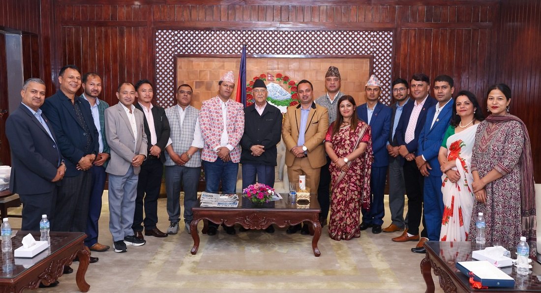 प्रधानमन्त्री निवास, बालुवाटारमा आज भएको भेटमा प्रधानमन्त्री एवं नेपाल कम्युनिष्ट पार्टी एमाले०का अध्यक्ष ओलीले चौतारीको नयाँ नेतृत्वलाई बधाई दिएका हुन्।