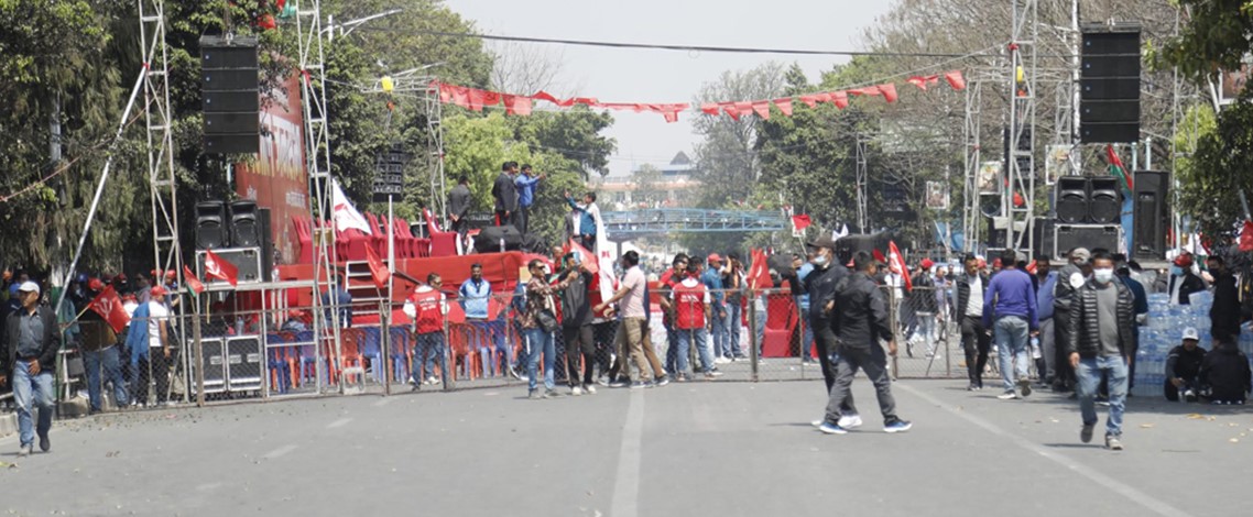 काठमाडौं १५ चैत । आज शुक्रबार काठमाडौँका दुई स्थानमा छुट्टाछुट्टै प्रदर्शन हुँदैछ। नेकपा माओवादी केन्द्रसहितको समाजवादी मोर्चा र राजावादीहरूले प्रदर्शन गर्न लागेका हुन्। जिल्ला प्रशासन कार्यालय काठमाडौँले मोर्चालाई भृकुटीमण्डप र राजवादीलाई तीनकुनेमा सभा गर्न ठाउँ तोकिदिएको छ।
