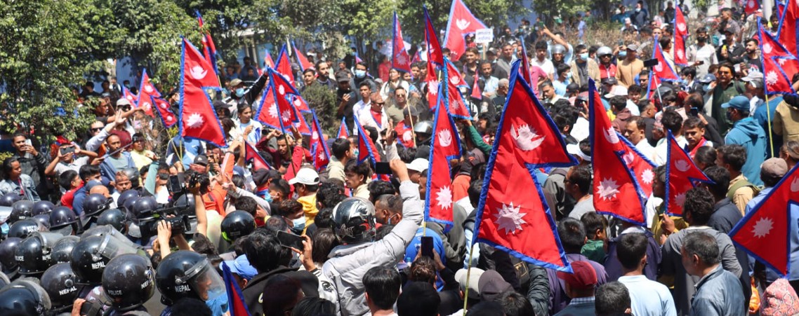 काठमाडौं १५ चैत । काठमाडौँको तीनकुने क्षेत्रमा राजावादी समर्थकको प्रदर्शनमा नेपाल प्रहरी र प्रदर्शनकारीबीच धकेलाधकेल भएको छ।