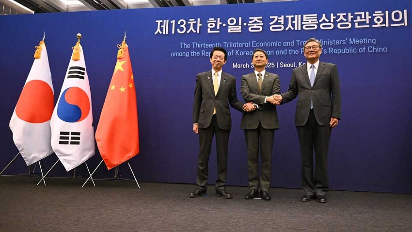 बैठकमा दक्षिण कोरियाका उद्योगमन्त्री आन डक–ग्युन, उहाँका जापानी समकक्षी योजी मुतो र चीनका वाङ वेन्ताओ उपस्थित हुनुहुन्थ्यो । तीन देशले व्यापक त्रिपक्षीय स्वतन्त्र–व्यापार सम्झौताका लागि वार्ता तीव्र पार्न आह्वान गरेका तथा अनुमानयोग्य व्यापार र लगानी वातावरण सिर्जना गर्न सहमत भएका बैठकपछिको विज्ञप्तिलाई उद्धृत गर्दै खबरमा उल्लेख छ ।