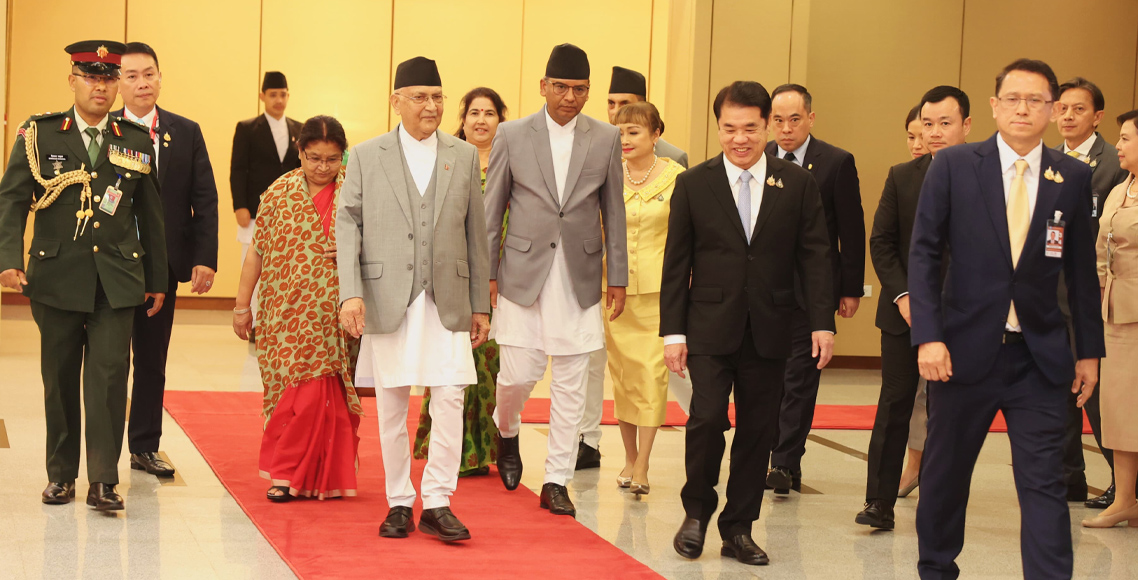 थाइल्याण्डको सरकारी भवनमा भेटवार्ताअघि प्रधानमन्त्री ओली समकक्षी सिनावातले आयोजना गरेको स्वागत समारोहमा सहभागी भएका थिए।