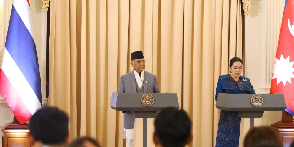 थाइल्यान्डको औपचारिक भ्रमणका क्रममा बैङ्ककमा रहनुभएका प्रधानमन्त्री ओलीले थाइल्यान्डका प्रधानमन्त्री पे थोङ् थान् शिनावात्सँगको भेटवार्तापछि आयोजित संयुक्त पत्रकार सम्मेलनमा प्रधानमन्त्री ओलीले भ्रमणबाट दुई मुलुकबिच संस्कृति, पर्यटन, शिक्षा, ऊर्जालगायतका क्षेत्रमा सहकार्य अभिवृद्धि हुने विश्वास व्यक्त गर्नुभयो ।