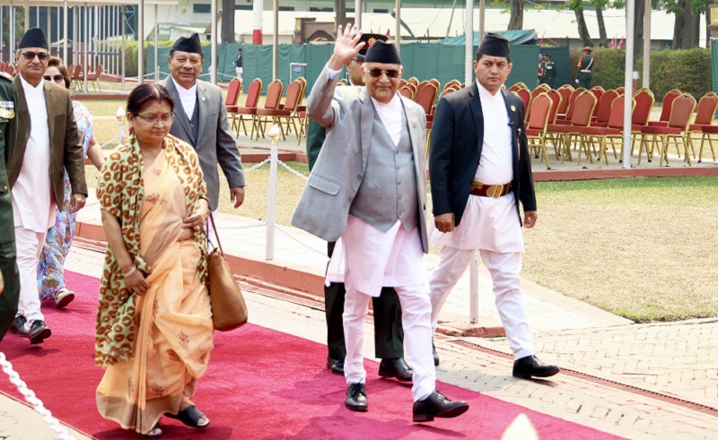 प्रधानमन्त्री ओलीलाई त्रिभुवन विमानस्थलको अतिविशिष्ट कक्षमा उपप्रधानमन्त्री प्रकाशमान सिंह, गृहमन्त्री रमेश लेखक, संस्कृति, पर्यटन तथा नागरिक उड्डयनमन्त्री बद्रीप्रसाद पाण्डे, सरकारका उच्चपदस्थ अधिकृत तथा सुरक्षा अङ्गका प्रमुखले स्वागत गर्नुभयो ।