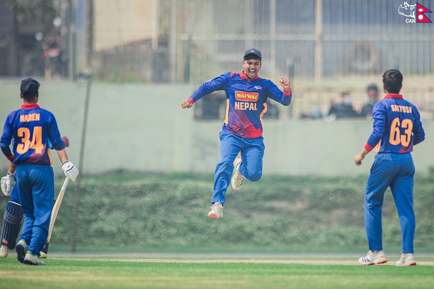 मूलपानी क्रिकेट मैदानमा टस जितेर ब्याटिङ गरेको अफगानिस्तान ५० ओभरमा १ सय ६८ रन बनाउँदा अलआउट भयो । अफगानिस्तानका कप्तान महबूब खानले ५८ रन बनाए । नेपालका सन्तोष यादवले ३ तथा सिबरिन श्रेष्ठ र विपिन शर्माले २र२ विकेट लिए ।