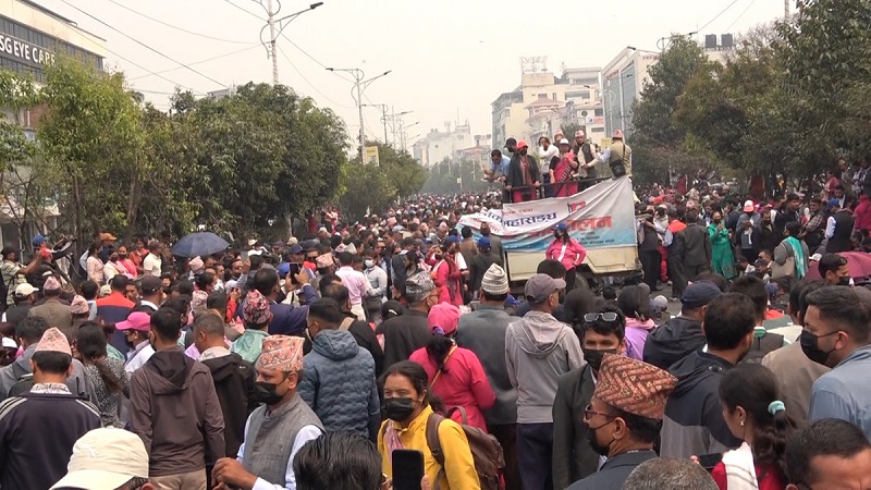 काठमाडौं २५ चैत । काठमाण्डौ केन्द्रित सडक आन्दोलन गरिरहेका शिक्षकहरुले आज कालो मास्क लगाएर मौन प्रदर्शन गरेका छन् । विद्यालय शिक्षा ऐन जारी गर्न माग गरेर चैत २० गते बुधवारदेखि काठमाण्डौ केन्द्रित प्रदर्शन गर्दै आएका शिक्षकहरुले आज कालो मास्क लगाएर मौन प्रदर्शन गरेका हुन् ।