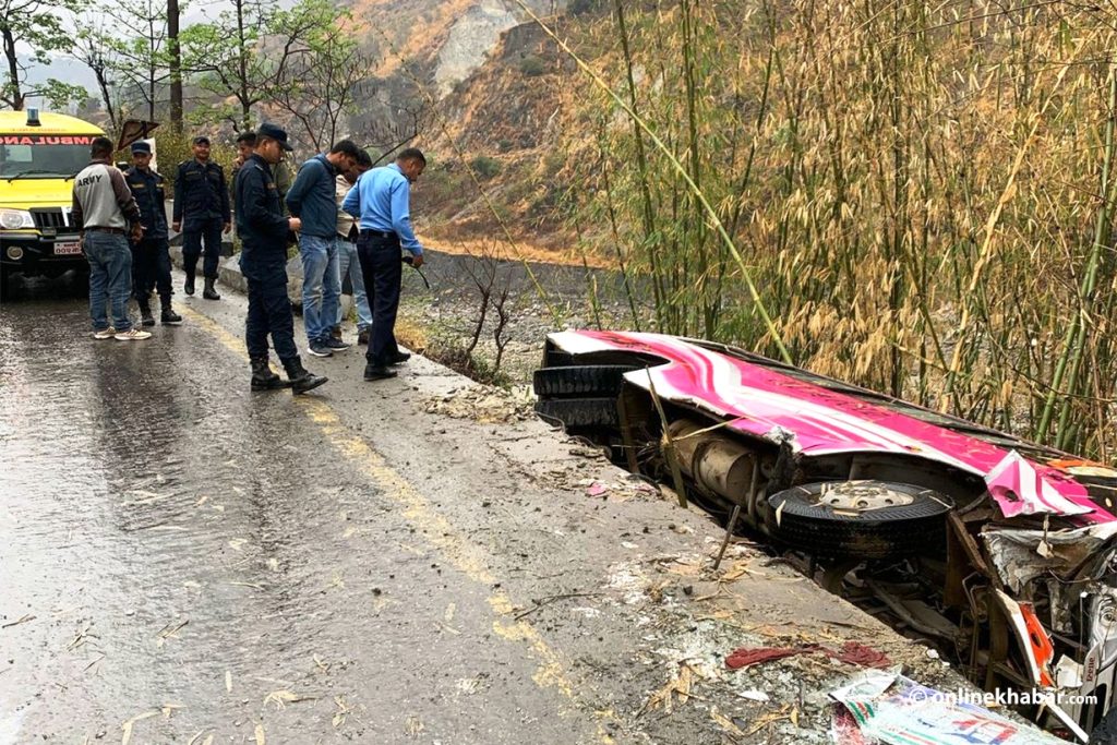 प्रहरी निरिक्षक गिरीका अनुसार बस चिप्लिएर खाँदबारीबाट काठमाडौंतर्फ आउँदै गरेको मे१ख ३३९४ नं को हाइस पनि ठोक्किएको थियो । हाइसका यात्रु भने सकुशल छन् ।