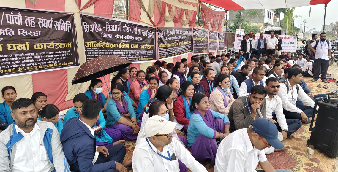 काठमाडौं २९ चैत मधेस प्रदेशका १ हजार ८ सय बढी स्वास्थ्यकर्मी आन्दोलनमा उत्रिएका छन्। मुख्यमन्त्री कार्यालय अगाडि जारी धर्नामा चौथो र पाँचौं तहका सिअहेव तथा सिअनमी स्वास्थ्यकर्मी सहभागी छन्। उनीहरूले चैत २५ गतेदेखि धर्ना सुरु गरेका थिए ।