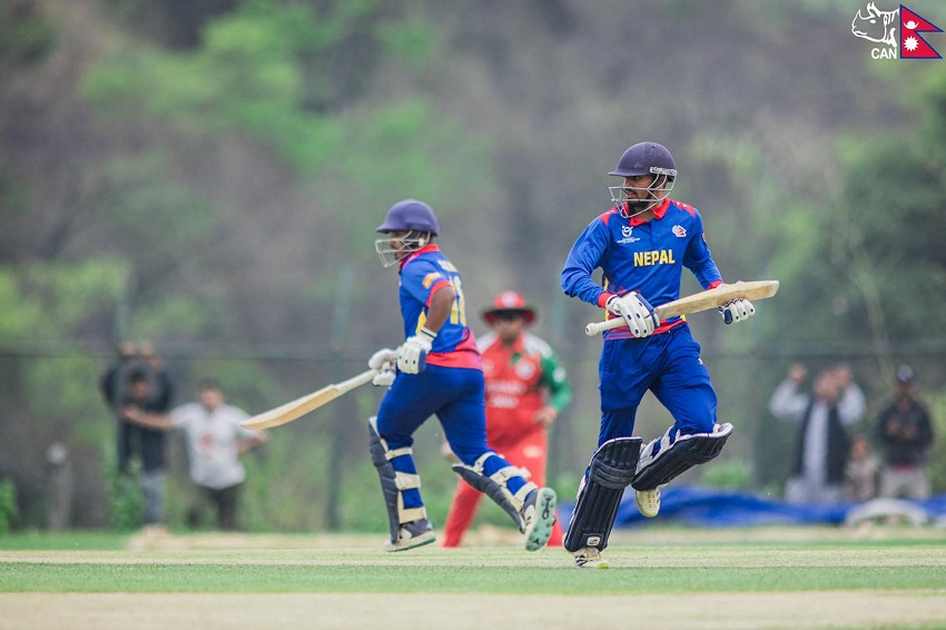 ओमानलाई ८ विकेटले हराउँदै नेपालकाे लगातार दाेस्राे जीत