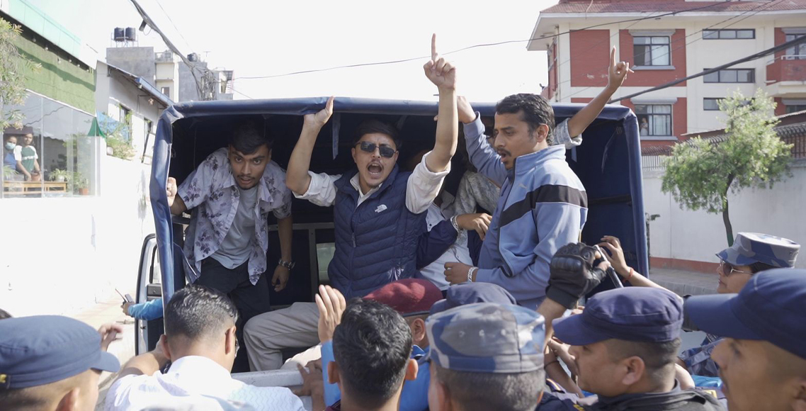 प्रधानमन्त्रीविरुद्ध प्रधानमन्त्रीको सरकारी निवास बालुवाटारअघि प्रदर्शन गरेका नेविसंघका नेही नेतालाई प्रहरीले नियन्त्रणमा लिएको छ। नेविसंघका नेताहरू विनोदराज जोशी, विवेक आचार्य, उपशना अधिकारीलाई प्रहरीले नियन्त्रणमा लिएको छ। त्यस्तै नेविसंघ आरआर इकाइ सभापति जितेन्द्र तिमिल्सिना, नेता सुमीत भट्टराई, मनीष भट्टराई, आदर्श तिवारी र हिमाल विष्ट प्रहरी नियन्त्रणमा छन्।