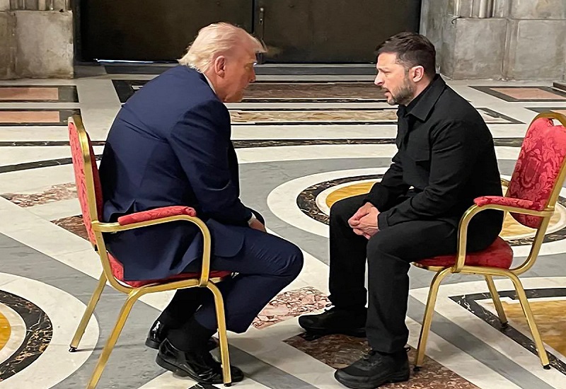 पोप फ्रान्सिसको अन्त्येष्टि समारोह शुरू हुनु केही अगाडि उहाँहरुबीच छोटो भेट भएको हो । पछिल्लो यो भेट गएको फेब्रुअरीमा ह्वाइट हाउसमा भएको विवादपछिको ट्रम्प र जेलेन्स्कीबीचको पहिलो प्रत्यक्ष भेटसमेत हो ।