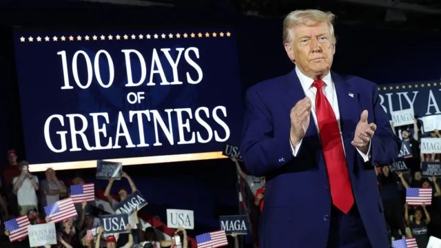काठमाडौं १७ बैशाख । अमेरिकी राष्ट्रपति डोनाल्ड ट्रम्पले आफ्नो दोस्रो कार्यकालको १०० दिन पूरा गर्नुभएको छ । कार्यकालको १०० दिन पूरा भएको अवसरमा राष्ट्रपति ट्रम्पले आफ्ना उपलब्धिहरू दाबी गर्दै चुनावी अभियानकै शैलीको भाषण गर्नुभएको बीबीसीले जनाएको छ ।