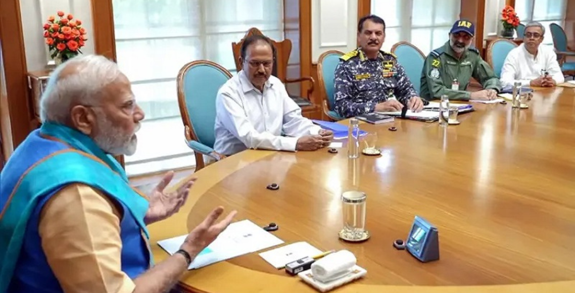 बैठकमा रक्षामन्त्री राजनाथ सिंह, सीडीएस अनिल चौहान, तीनै सशस्त्र सेनाका प्रमुख, एनएसए अजित डोभालका साथै आईबी र रअका प्रमुखहरू उपस्थित छन्।
