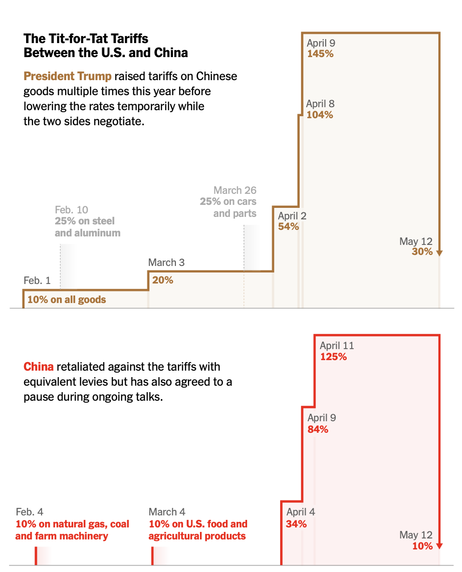 संयुक्त वक्तव्यमा, दुवै देशले ९० दिनका लागि आ–आफ्ना करहरू निलम्बन गर्ने र हालै स्विजरल्याण्डमा शुरु भएको वार्तालाई निरन्तरता दिने उल्लेख गरिएको छ । सम्झौता अनुसार, संयुक्त राज्य अमेरिकाले चिनियाँ आयातमा लाग्ने करलाई हालको १४५ प्रतिशतबाट ३० प्रतिशतमा झार्नेछ भने चीनले अमेरिकी सामानहरूमा लाग्ने आयात शुल्कलाई १२५ प्रतिशतबाट १० प्रतिशतमा झार्नेछ।