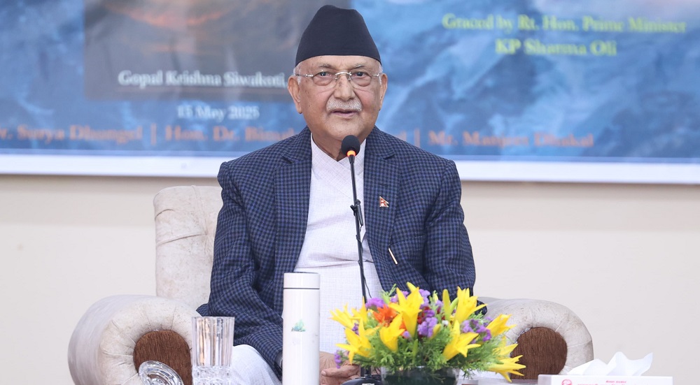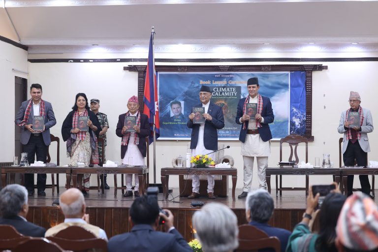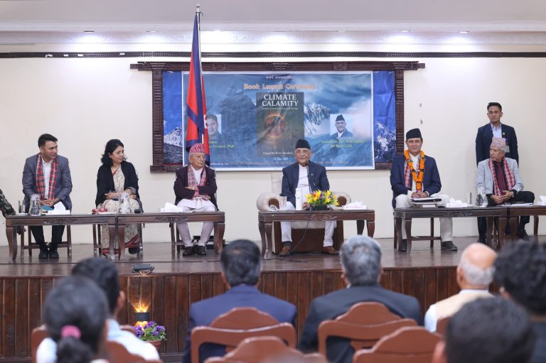 सगरमाथा संवादको पूर्वसन्ध्यामा डा। गोपालकृष्ण शिवाकोटीद्वारा लिखित ‘क्याइमेट कालामिटी स् जष्टिस फर लस एण्ड ड्यामेज’ पुस्तकको बिहीबार लोकार्पण गर्दै प्रधानमन्त्री ओलीले हाम्रा भविष्यका सन्तती सुरक्षित र सम्मानति होउन् भनेर काम गर्नुपर्नेमा जोड दिनुभयो ।