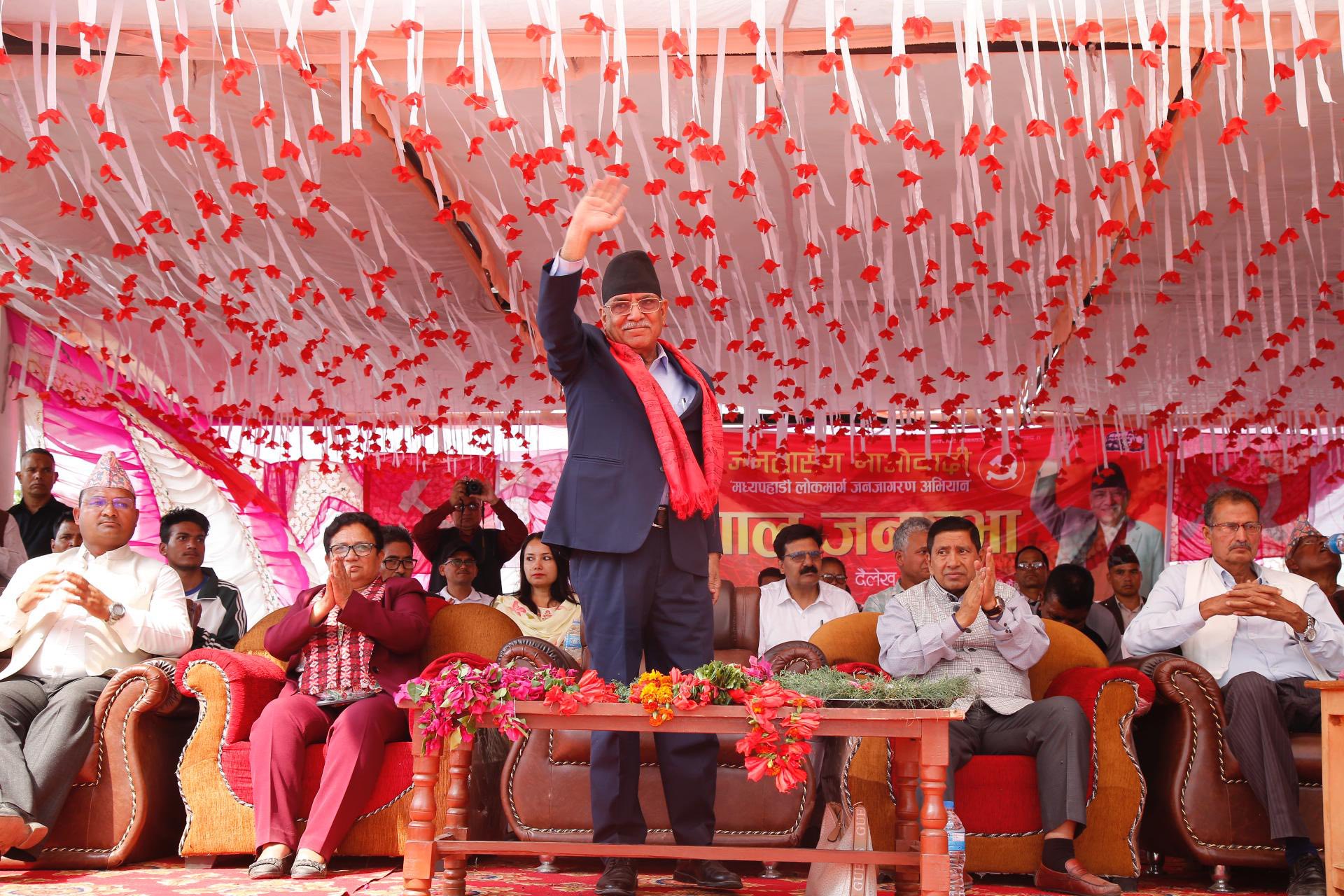‘केही समयअघि प्रधानमन्त्रीकै हैसियतमा दैलेखको दह गाउँमा आएर हाम्रो पुर्खाहरूको सालिक अनावरण गरेको थिएँ,’ उनले भने, ‘आज म तपाईँहरू दैलेखवासीकै अगाडि उभिएर म पनि दैलेखी नै हुँ भन्दा गर्व लागेको छ ।’ दैलेख आफ्नो पुर्खाहरूको थलो भएकाले विशेष महत्त्व लाग्ने गरेको पनि उनले बताए । दैलेख जिल्लाको दुल्लु नगरपालिका ३३ वटा जातजातिको थलो हो । दुल्लुकै दह गाउँ दाहालहरूको उद्गम थलो हो । प्रचण्डले दैलेखमा जनयुद्धका क्रममा भएका केही कमजोरीलाई स्मरण गरे । युद्धका क्रममा माओवादीको कमजोरीका कारण ‘दुल्लु विद्रोह’ भएको थियो । त्यहाँ जनताहरू माओवादी विरुद्ध एकजुट भएर आन्दोलन नै गरेका थिए । उक्त घटनाले माओवादीभित्र एक खालको तरङ्ग नै पैदा गरेको थियो । प्रचण्डले भने, ‘जनयुद्धको वेलामा पनि दैलेखमा केही विवाद, कमीहरू पनि भएका थिए, त्यसलाई हामीले सच्याएका थियौँ ।’