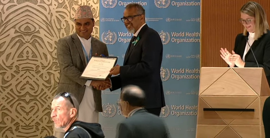 विश्व स्वास्थ्य संगठनको ७९औँ सभाका क्रममा जेनेभामा आयोजित कार्यक्रममा महानिर्देशक डा टेड्रोस अधानोम घेब्रेएससले स्वास्थ्य तथा जनसंख्या मन्त्री प्रदीप पौडेललाई पुरस्कृत गरेका हुन्।