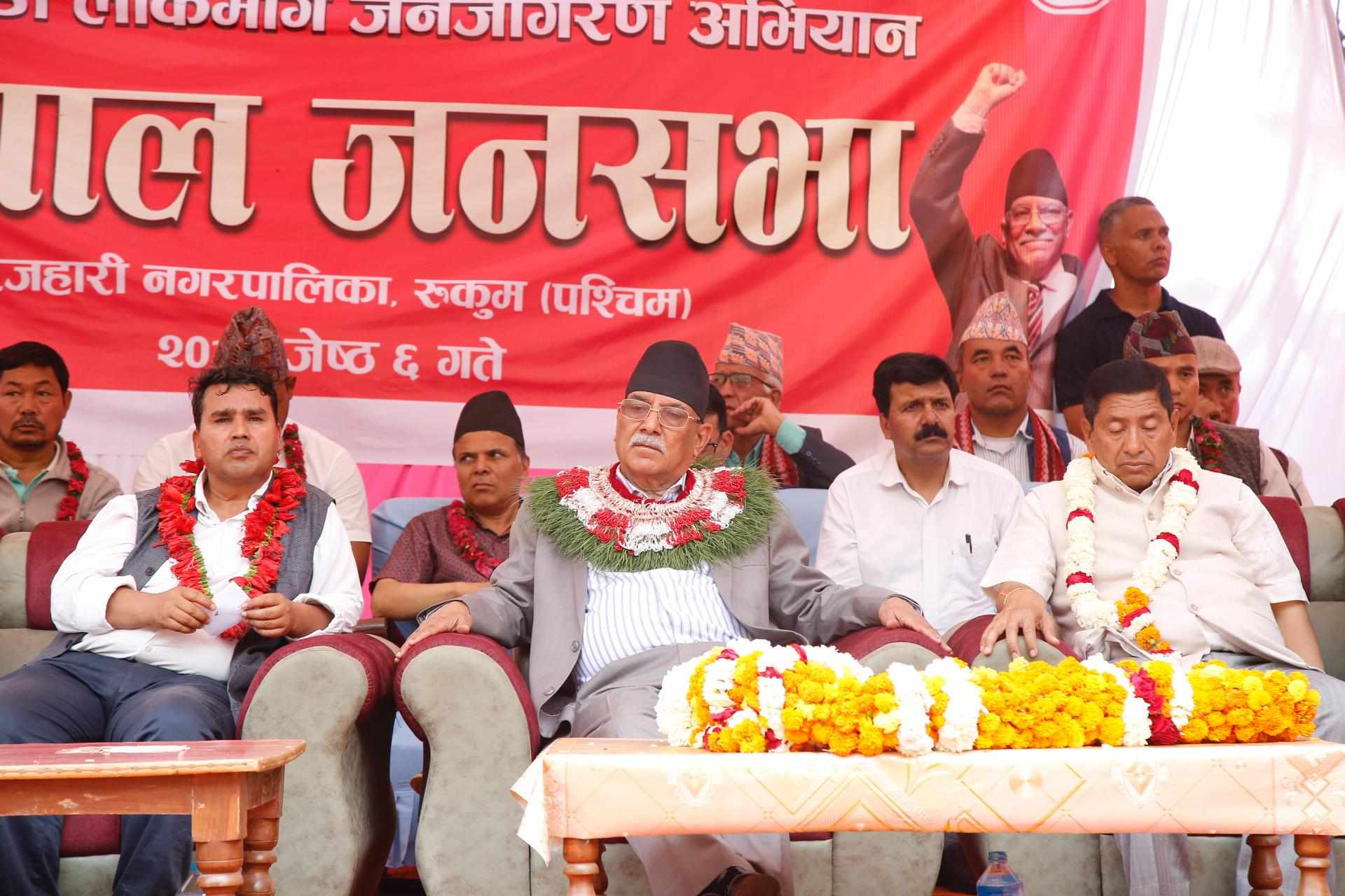 रुकुम पश्चिम, ६ जेठ । माओवादी केन्द्रका अध्यक्ष तथा पूर्वप्रधानमन्त्री पुष्पकमल दाहाल प्रचण्डले आफूहरु समाजवादी क्रान्तिको तयारीमा रहेको बताएका छन् । पार्टी जागरण अभियानअन्तर्गत मध्यपहाडी लोकमार्ग यात्रामा रहेका प्रचण्डले मंगलबार रुकुम पश्चिमको चौरजहारीमा आयोजित जनसभालाई सम्बोधन गर्दै तत्कालीन ‘जनयुद्ध’ताका पनि आफू यहीं भेगमा आएर जनताबाट क्रान्तिको अनुमोदन गरेको स्मरणसमेत गरे । आफूहरुले लडेर ल्याएको गणतन्त्रलाई कमजोर बनाउन विभिन्न खेल भइरहेको अध्यक्ष प्रचण्डको भनाइ थियो । ‘अब पहिलेजस्तो भूमिगत भएर र हतियार उठाएरभन्दा पनि सडक र सदनबाट समाजवादी क्रान्तिलाई सफल बनाउन लाग्नुपर्छ,’ उनले भने ।
