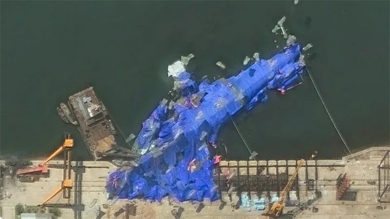 पक्राउ पर्नेहरूमा चोङजिन शीपयार्डका मुख्य इन्जिनियर, शीपयार्डका निर्माण प्रमुख र एक प्रशासनिक प्रबन्धक रहेका छन् । युद्धपोत पूर्वी बन्दरगाह शहर चोङजिन शिपयार्डमै निर्माण गरिएको थियो । युद्धपोतलाई ठूलो निलो त्रिपालले छोपिएको तस्वीरमा देखिन्छ ।