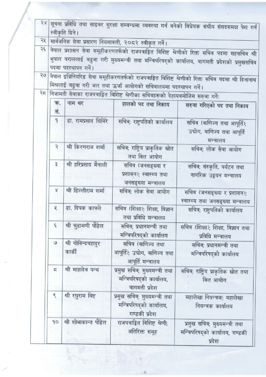 त्यस्तै नेपाल कृषि अनुसन्धान परिषद्को कार्यकारी निर्देशक पदमा वरिष्ठ वैज्ञानिक डा। कृष्णप्रसाद तिम्सीनालाई नियुक्त गरेको छ।