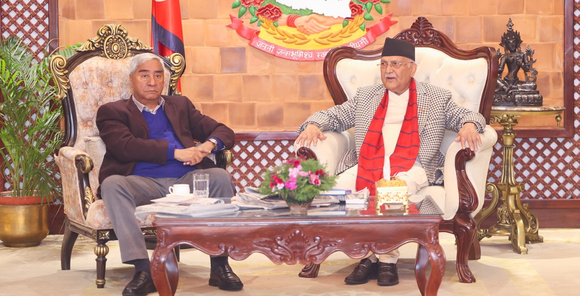 प्रधानमन्त्री केपी शर्मा ओली र नेपाली कांग्रेसका सभापति शेरबहादुर देउवाबीच केहीबेरअघि भएको छलफलमा गृहमन्त्री रमेश लेखक पनि थिए।