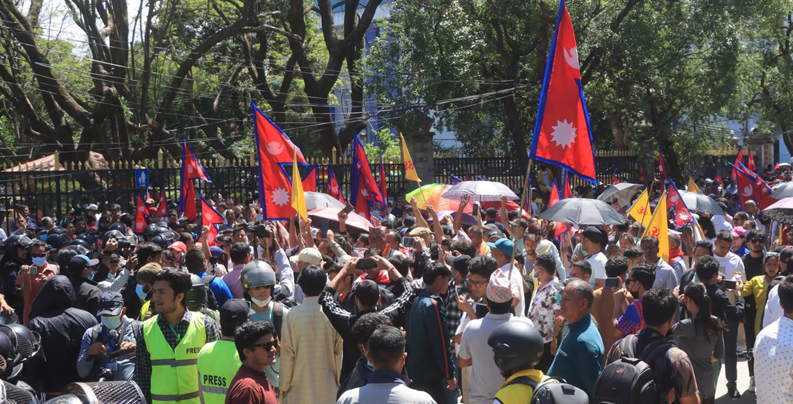 एमालेको उत्सव नसकिँदै राजावादीको विरोध र्‍याली, रत्नपार्कमा घम्साघम्सी