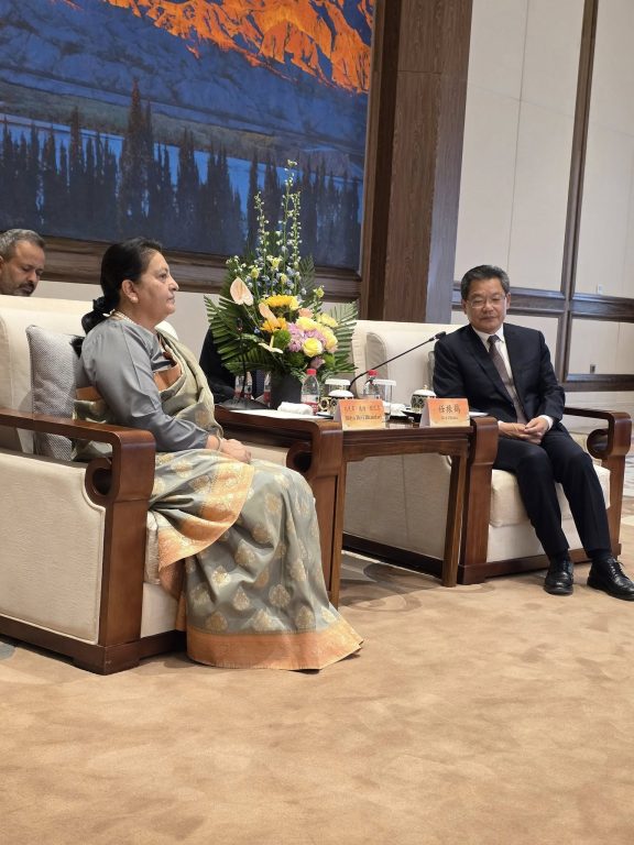 साताव्यापी भ्रमणमा क्रममा चीनको गान्सु प्रान्त पुगेकी उनले शनिबार चिनियाँ उपराष्ट्रपति हान झेङसँग भेटवार्ता गरेकी हुन्।