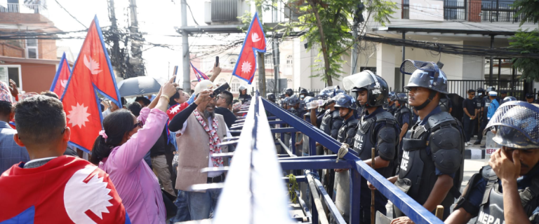 राजावादीहरुको आन्दोलनलाई लक्षित गर्दै सरकारले शुक्रबार नारायणहिटी क्षेत्रलाई निषेधित क्षेत्र घोषणा गरेको थियो। त्यसपछि उनीहरू रत्नपार्कस्थित शान्तिबाटिकामा भेला भएरनक्साल हुँदै प्रधानमन्त्री निवास बालुवाटारतर्फ लागेका थिए।