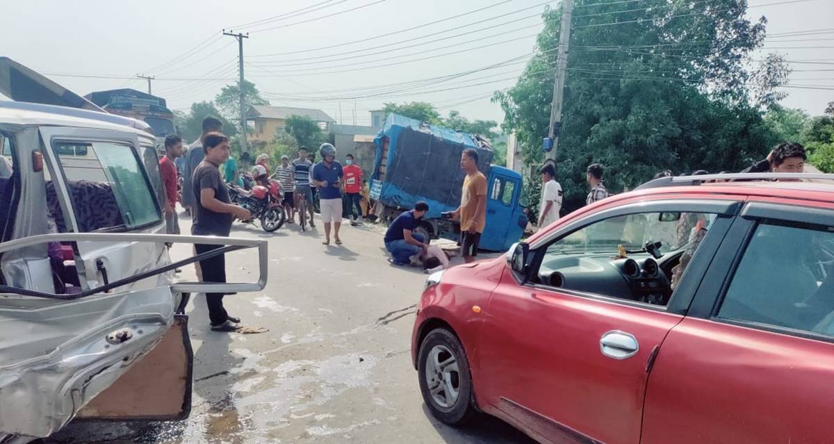 नवलपुरमा एम्बुलेन्स र स्कुल भ्यान ठोकिँदा एकजनाको मृत्यु, दुई विद्यार्थीसहित ६ घाइते