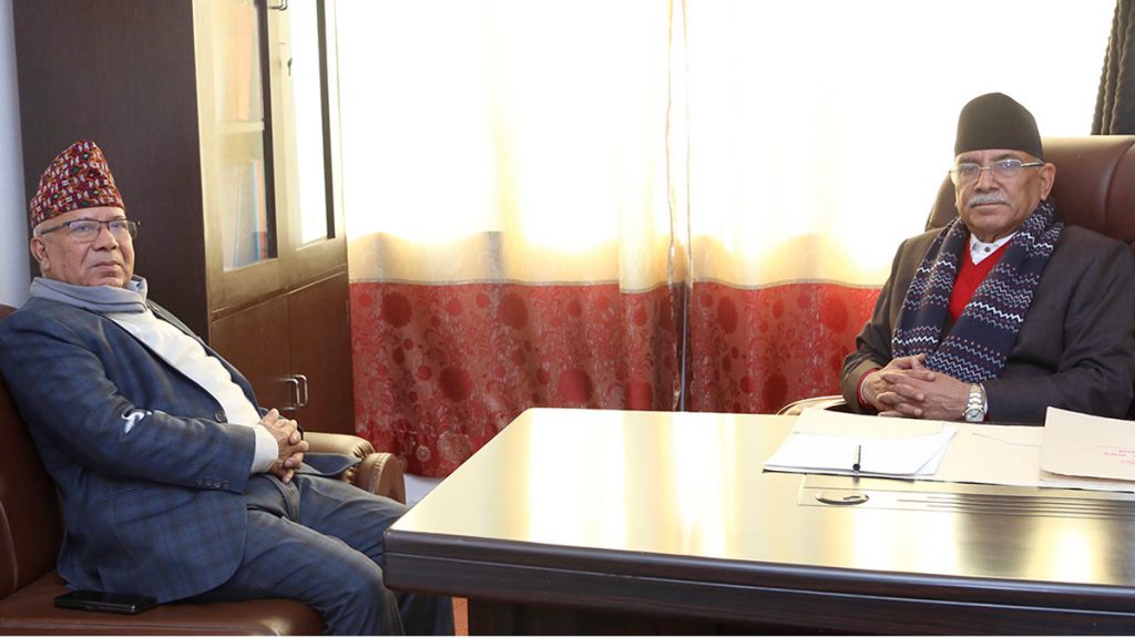 काठमाडौ १९ जेठ । नेपाल कम्युनिस्ट पार्टी माओवादी केन्द्र का अध्यक्ष पुष्पकमल दाहाल प्रचण्ड र नेकपा एकीकृत समाजवादीका अध्यक्ष माधवकुमार नेपालबीच सिंहदरबारमा भेट भएको छ। भेटमा दाहाल, नेपालसँगै माओवादीका वरिष्ठ उपाध्यक्ष नारायणकाजी श्रेष्ठ र एकीकृत समाजवादीका नेता प्रमेश हमाल पनि सहभागी छन्।