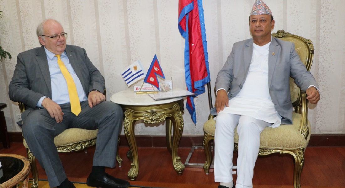 काठमाडौ २० जेठ । ऊर्जा, जलस्रोत तथा सिँचाइमन्त्री दीपक खड्कासँग नेपालका लागि उरुग्वेका गैरआवासीय राजदूत अल्बर्टो ए गुआनीले शिष्टाचार भेट गरेका छन्।