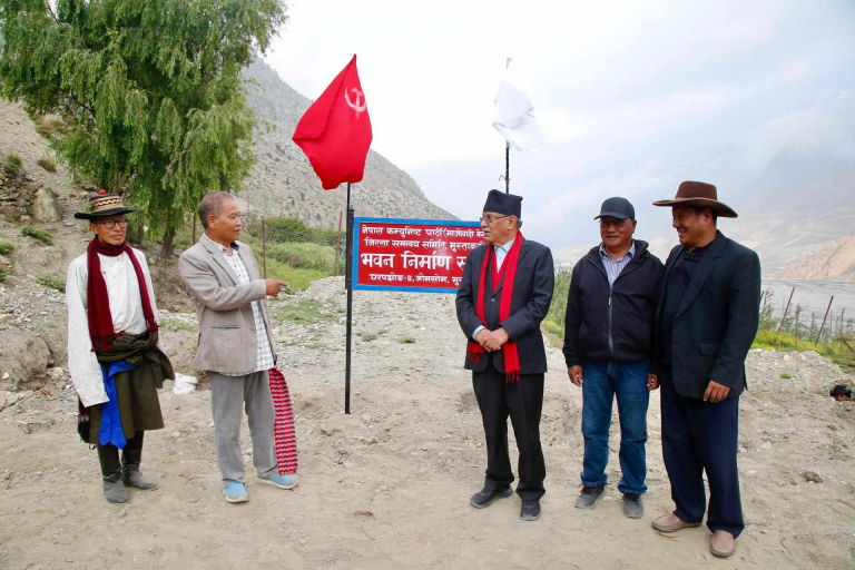 मुस्ताङको पेरिस डाँडामा प्रचण्डले गरे पार्टी कार्यालय शिलान्यास