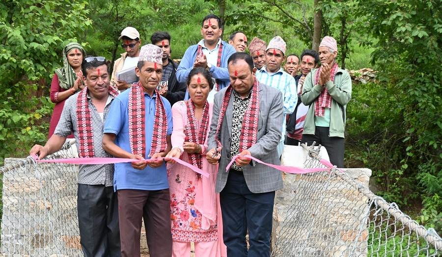 ५१ लाखको लागतमा दुई पालिका जोड्ने झोलुङ्गे पुल निर्माण