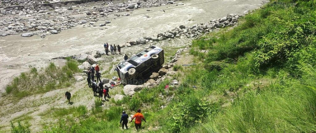 बागमती प्रदेश –३–०१–००५ख ९९७६ नम्बरको यात्रुवाहक मेलम्ची पारी दुर्घटनामा परेको हो ।