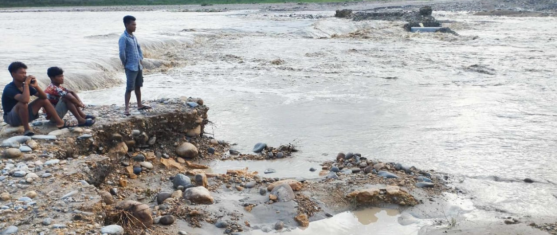 निरन्तरको वर्षासँगै पूर्व–पश्चिम राजमार्गअन्तर्गत विनयी खोलामा निर्माण गरिएको अस्थायी डाइभर्सन पानीको बहाव बढेपछि पटकपटक बगाउँदै आएको छ। रासस