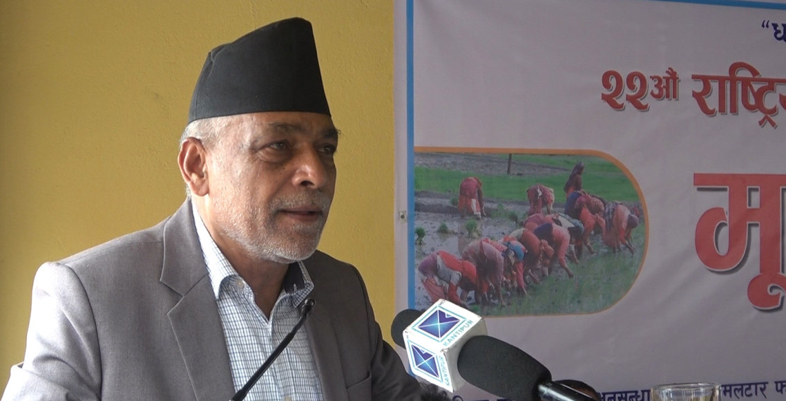 आइतबार २२औं राष्ट्रिय धान दिवसको अवसरमा ललितपुरमा आयोजित कार्यक्रमलाई सम्बोधन गर्दै उनले हिलोबाट तर्किएर देश नबन्ने बताएका हुन्। ‘अहिले हामी जुत्ता, चप्पल लगाएर हिलोमा टेकिन्छ भनेर तर्केर हिंड्छौँ,’ उनले भने, ‘सकेसम्म हिलोमा टेक्नु नपरोस् भन्ने ढंगको सोच बोकेका छौँ। तर वास्तवमा हामी जबसम्म हिलोमा पस्दैनौँ तबसम्म देश समुन्नतितर्फ जान सक्दैन।’