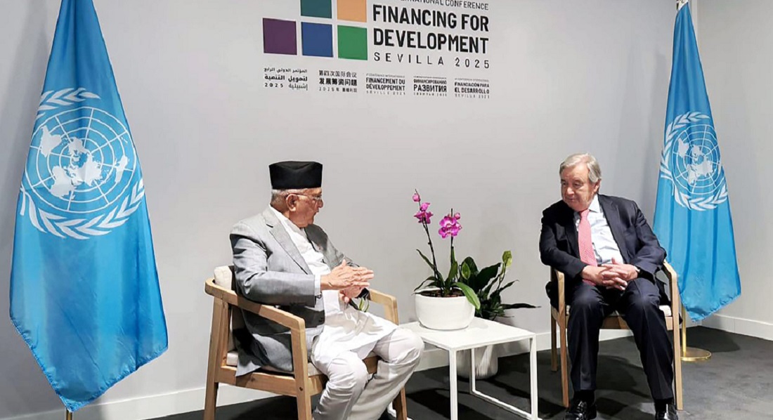 ‘विकासका लागि वित्त’सम्बन्धी चौथो अन्तर्राष्ट्रिय सम्मेलनमा सहभागी हुने क्रममा स्पेनको सेभियामा रहेका ओली र गुटेरेसबीच द्विपक्षीय भेटवार्ता भएको हो।
